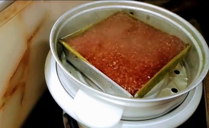 අපි මේ කේක් එක හදන්න යන්නේ ස්ටීම් කරලා එහෙම නැත්නම් ඔයාලට මේක ආවන් එකේ සෙල්සිය්ස් අංශක 175හෙ විනාඩි 25ක් තියාගෙන හදාගන්නත් පුළුවන්. හරි ඔය ගොල්ලෝ ස්ටීම් කරලා හදනවනම් රයිස් කුකර් එකේ වතුර නටනකම් තියලා සටීම එකට අපේ මිශ්රනෙ හදාගත්ත තැටිය කෙසෙල් කොලේකිම් වහලා විනාඩි 25ක් විතර තියාගන්න.